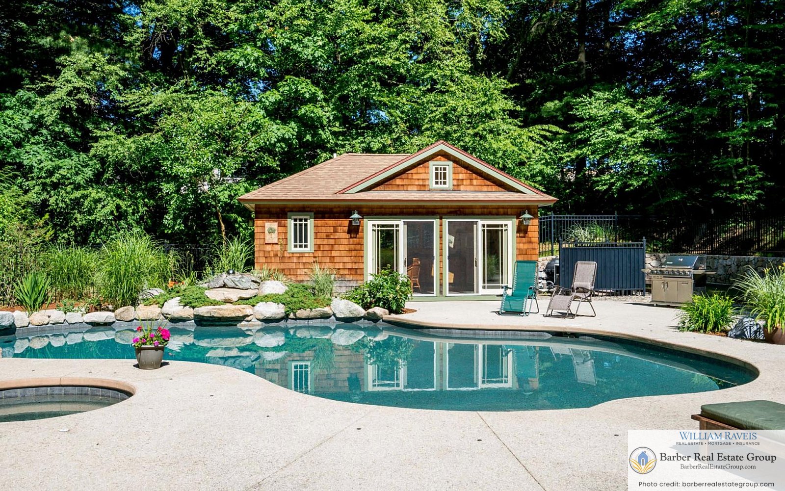 Two years after the home’s completion, the team was commissioned once again to design a complementary pool house in the same Arts & Crafts style, creating a cohesive and timeless lakeside retreat.